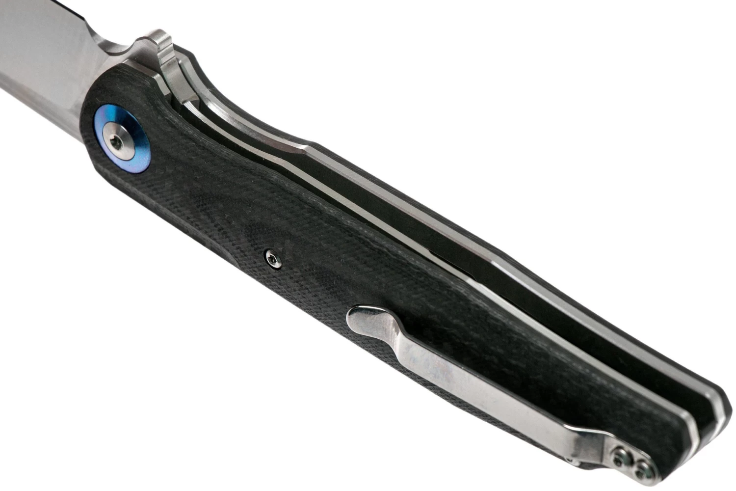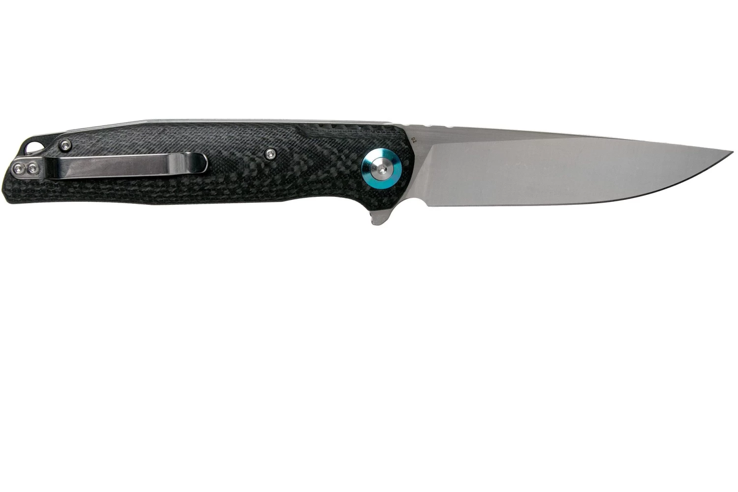 Le Bestech Ascot BG19 est un couteau de poche très cool à un prix attractif. Avec une lame de 10 cm, il joue dans la cours des grands mais il reste très léger avec seulement 125 grammes. Le manche de ce Bestech Fanga est très particulier. Il est fait de G10 et de fibre de carbone. Souvent, on observe une couche inférieure et une couche supérieure en fibre de carbone mais dans ce cas, les différentes couches alternent fibre de carbone et G10. Un effet très cool qui ressemble presque à l’acier damassé. Un couteau très cool donc à un prix vraiment intéressant.