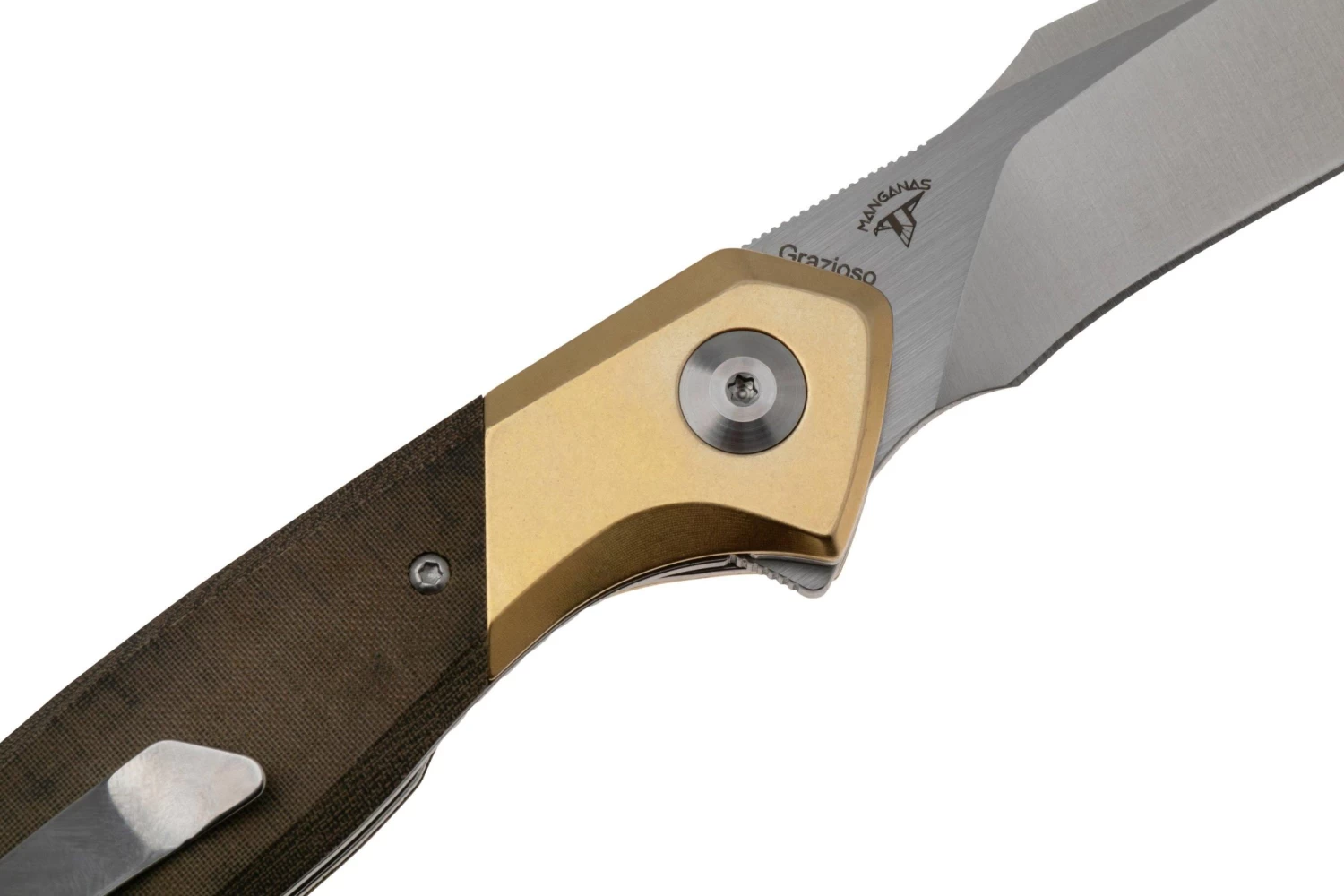 Le Kizer Grazioso V4572N2 est un couteau de poche EDC stylé et solide. Grazioso signifie élégant. Ce couteau le doit à son joli design. Le manche est en micarta vert avec un insert en laiton. Les liners en acier complètent ce look.